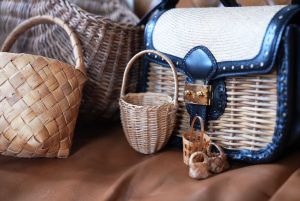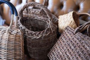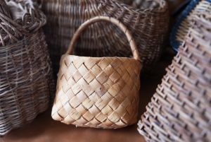 山葡萄やアケビ、紅籐などの天然素材をはじめ、丁寧に編まれたさまざまなデザインが